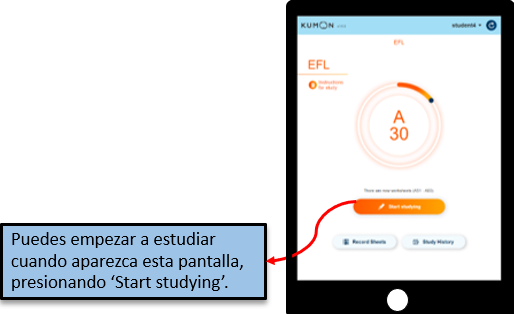 4. Si el botón “Start studying" aparece en gris, antes de estudiar haz clic en el botón "Actualizar" para recibir las hojas de estudio.