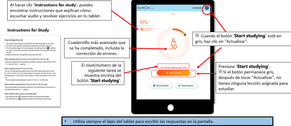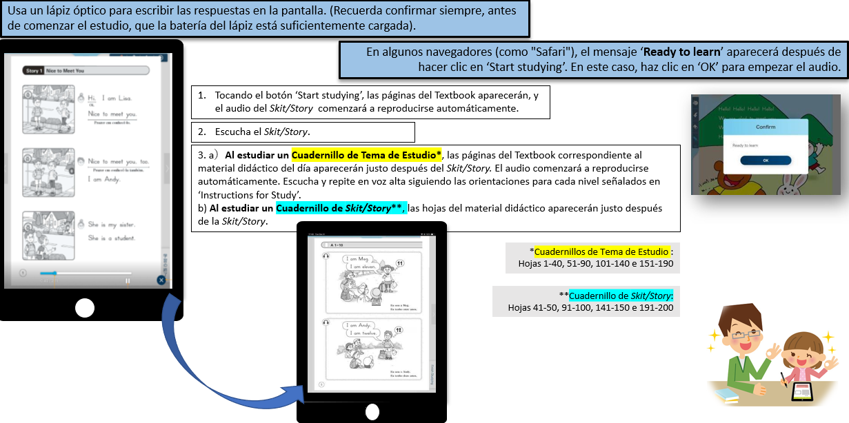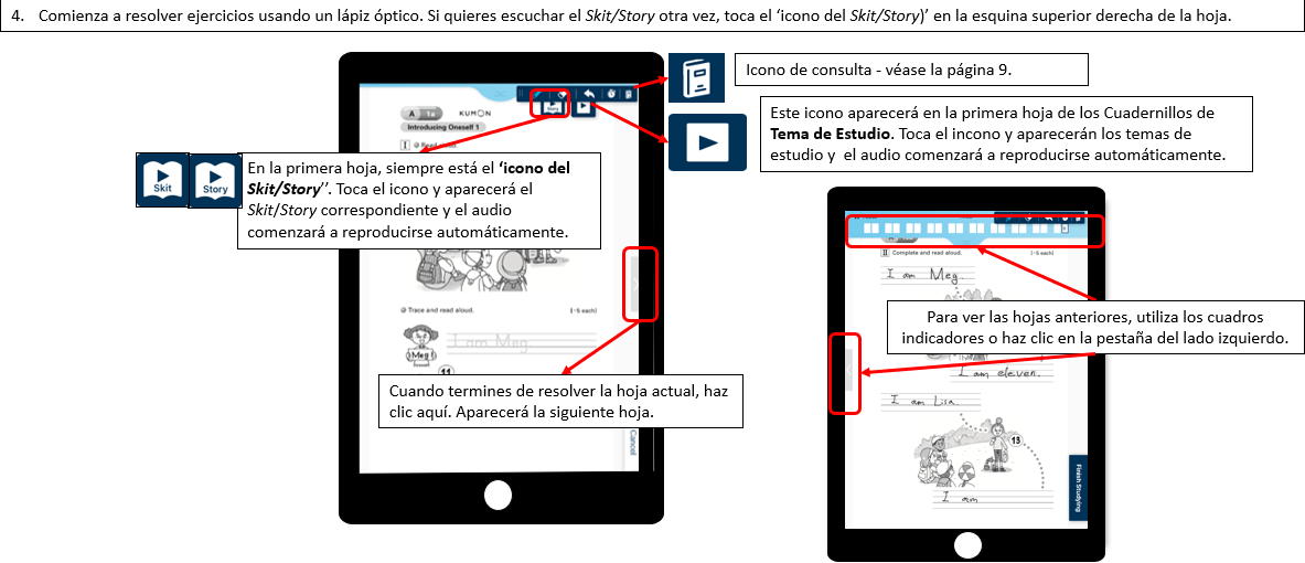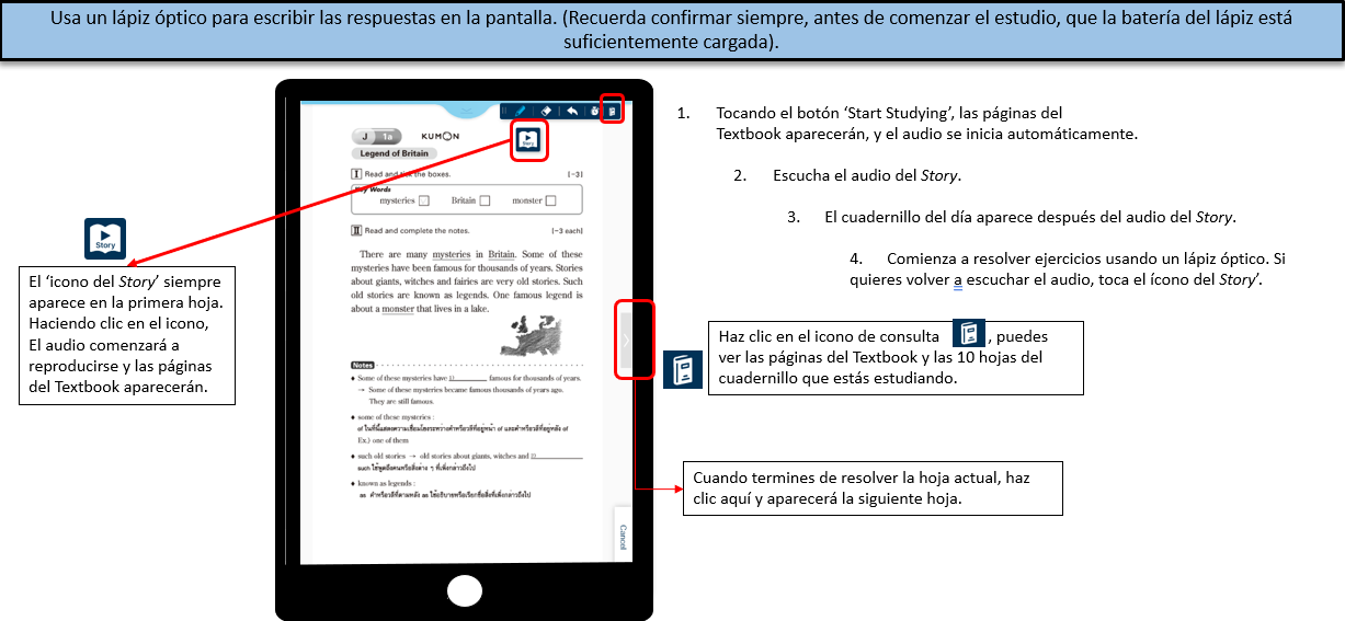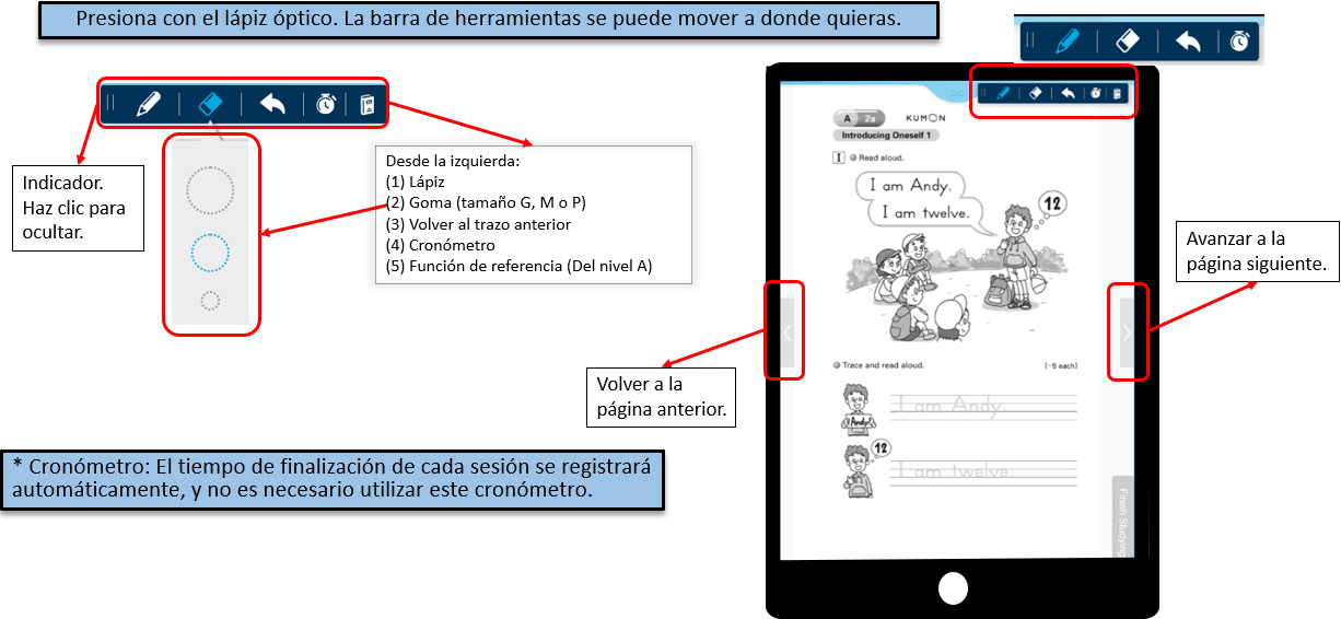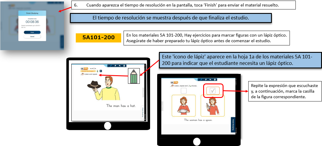 2. No hay ejercicios de escritura en los materiales 7A, 6A y 5A. A partir del nivel 4A los ejercicios requieren el uso del lápiz óptico. Antes de comenzar el estudio, asegúrate de que esté a mano y con suficiente batería.