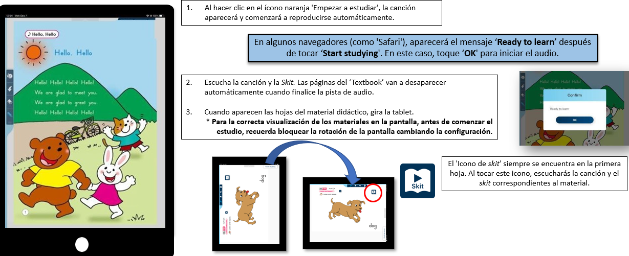 - Para la correcta visualización de los materiales en la pantalla, antes de comenzar el estudio, los alumnos de los niveles 7A hasta 5A deben bloquear la rotación cambiando la configuración.