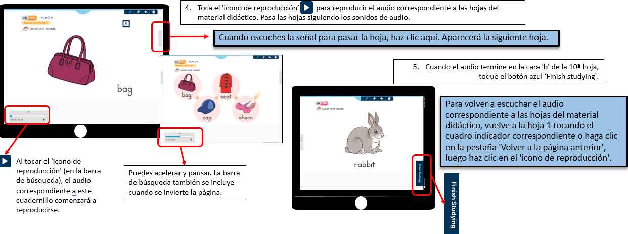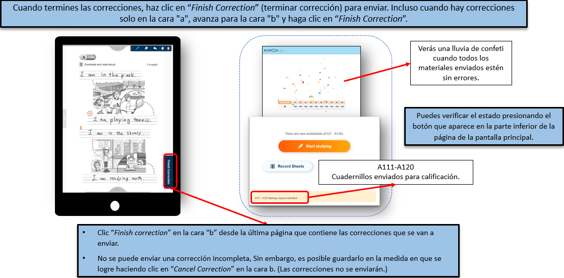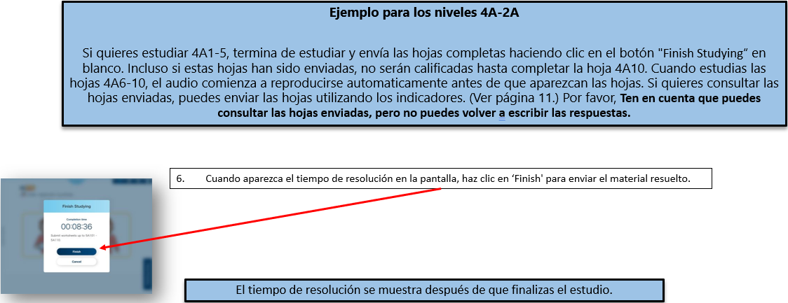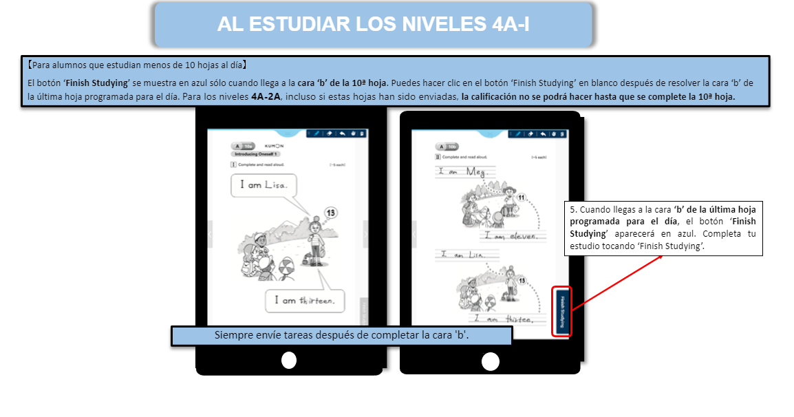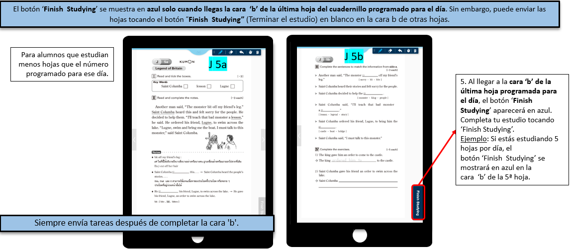 Cuando dejas de estudiar, Asegúrate de hacer clic en “Finish studying” en la esquina derecha después de terminar el lado b (Consulta la p.5 “Finish studying”).