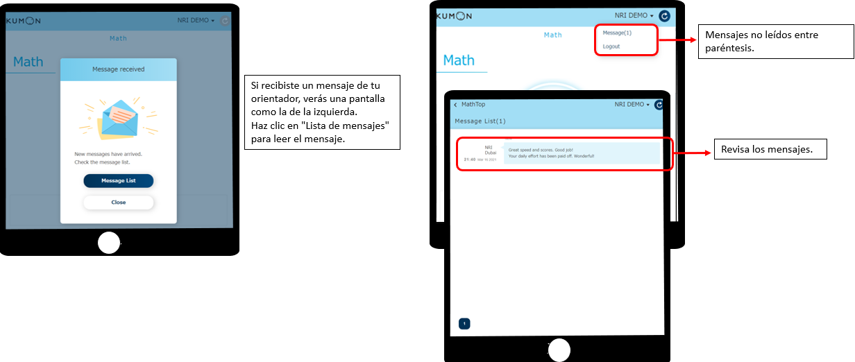 Si tienes un mensaje de tu orientador, puedes verificarlo de la siguiente manera.