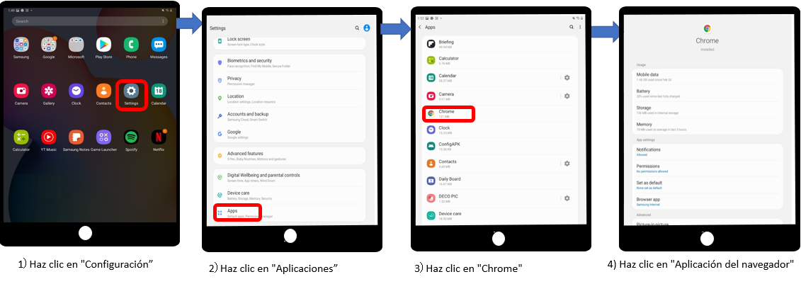 Cómo configurar el navegador predeterminado de Google Chrome en la tableta SAMSUNG