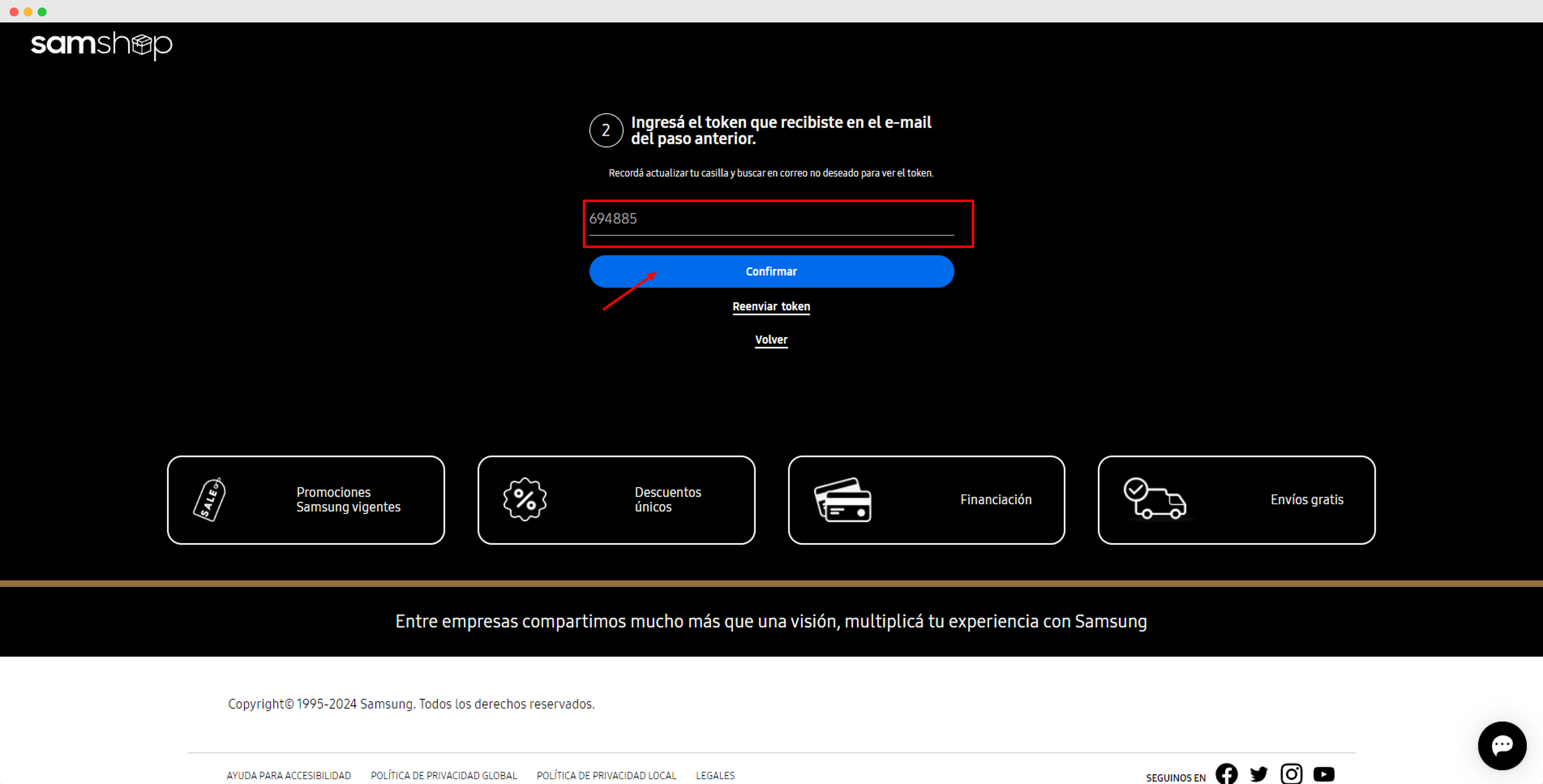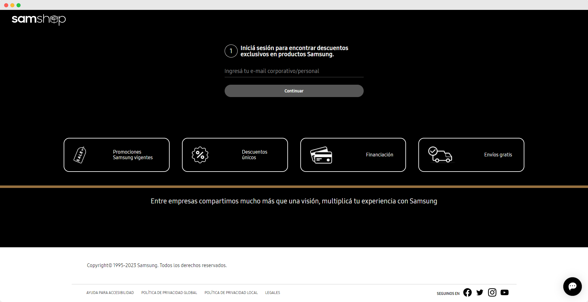 En su navegador de internet preferido, acceda al sitio web: https://www.samshop.com/