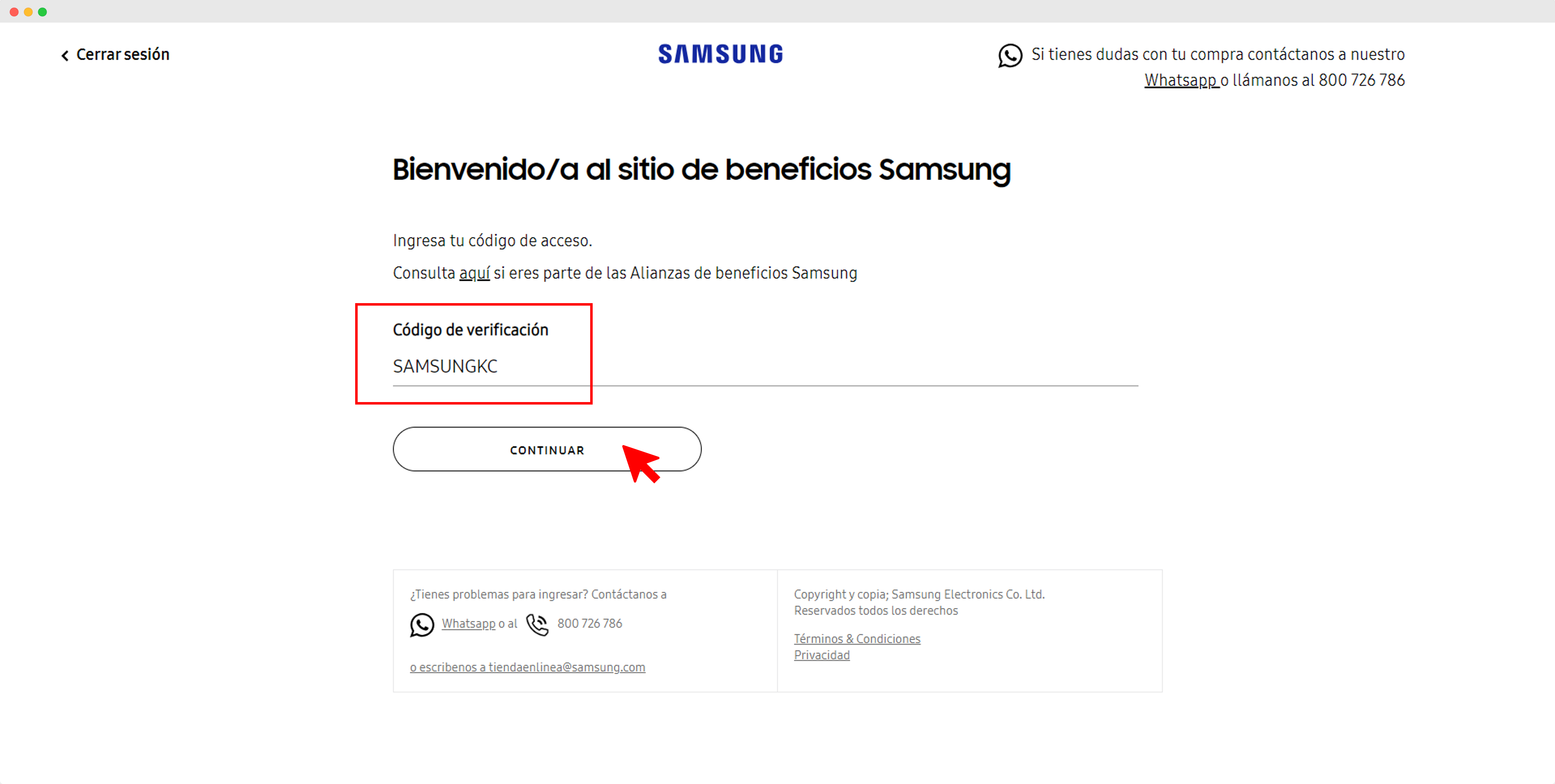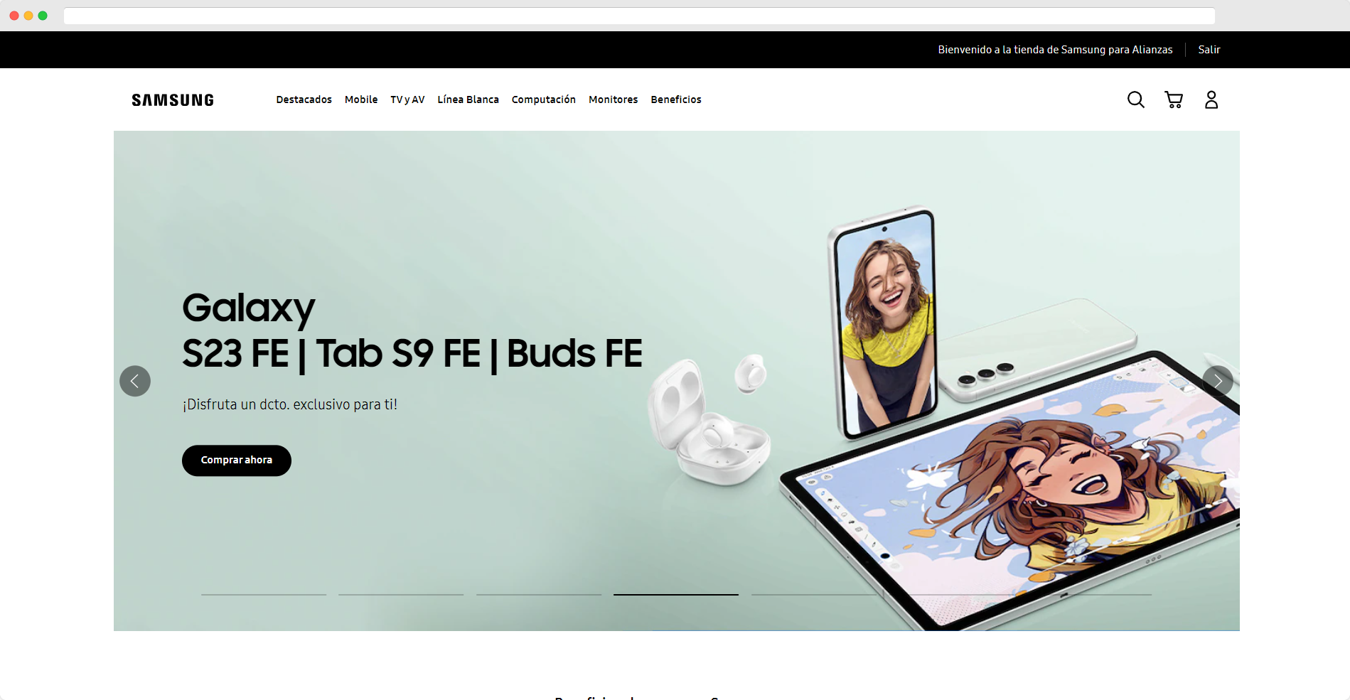 En su navegador de internet preferido, acceda al sitio web: https://samsung.com/cl/multistore/alianzas